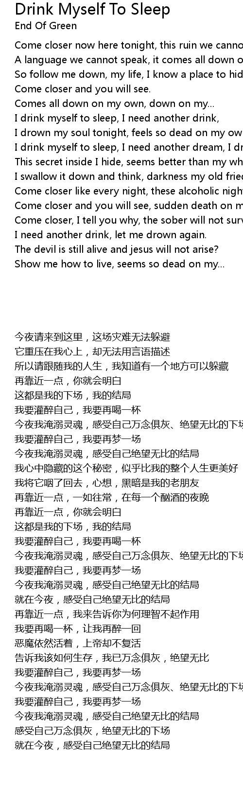 I drink myself to sleep, I need another dream, I drown my soul tonight... |