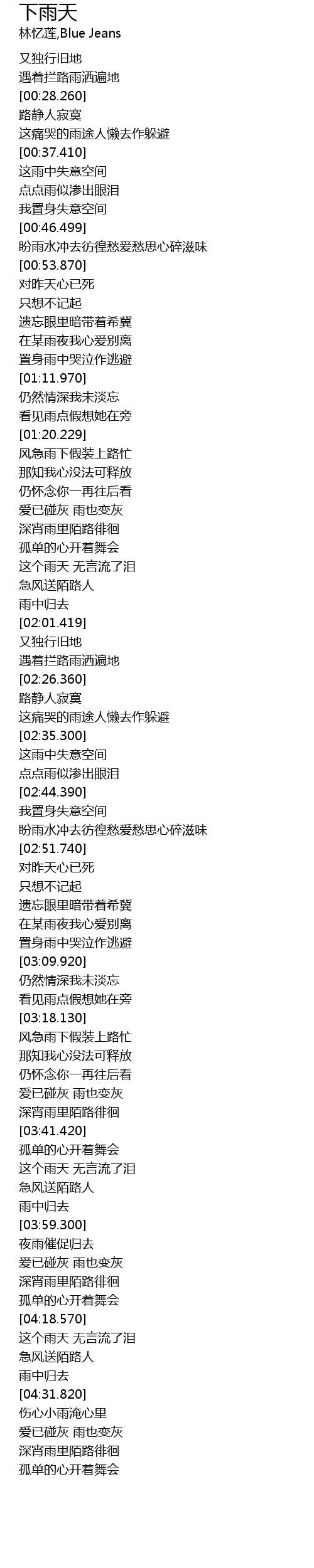 | [03:02.370] | 在某雨夜我心爱别离 |