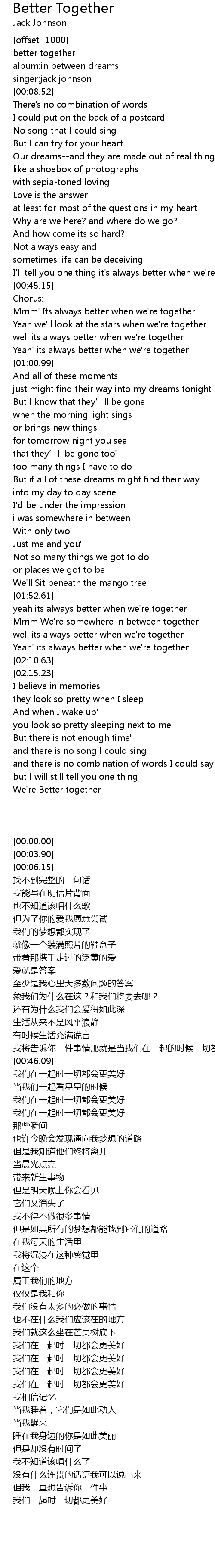 | [00:47.18] | Mmm' Its always better when we' re together |