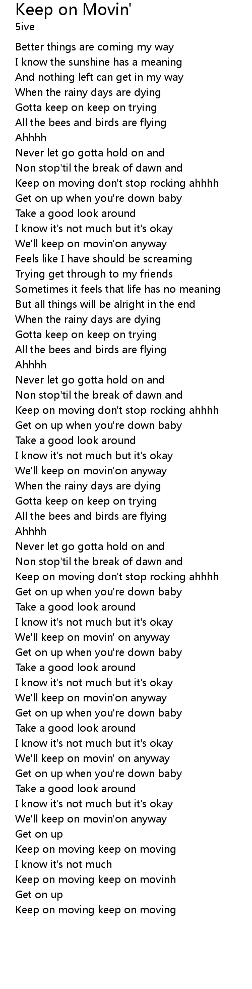 | [01:41.178] | We' ll keep on movin' on anyway |