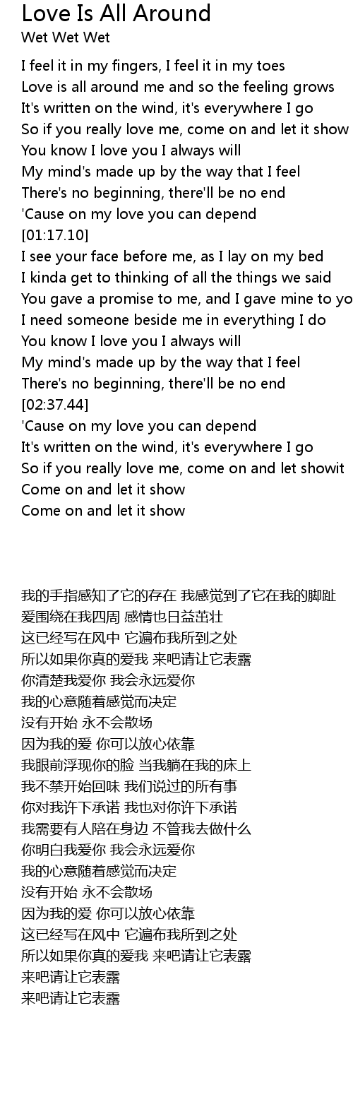 Love is all around me and so the feeling grows |