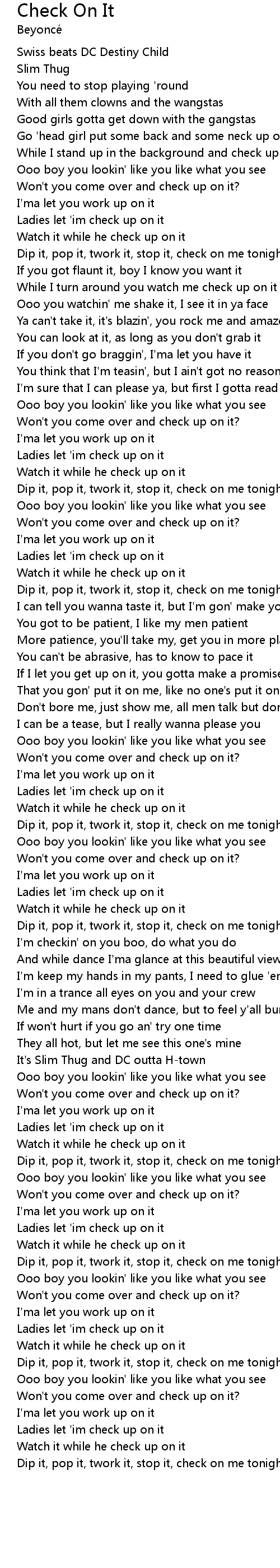 Dip it, pop it, twork it, stop it, check on me tonight |