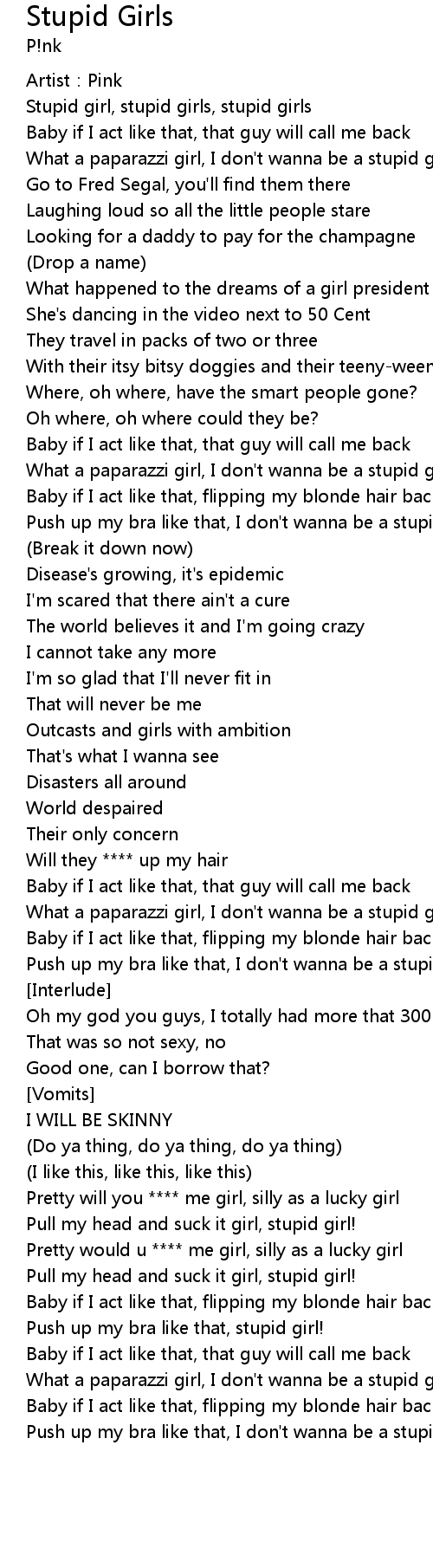 | What a paparazzi girl, I don't wanna be a stupid girl | |