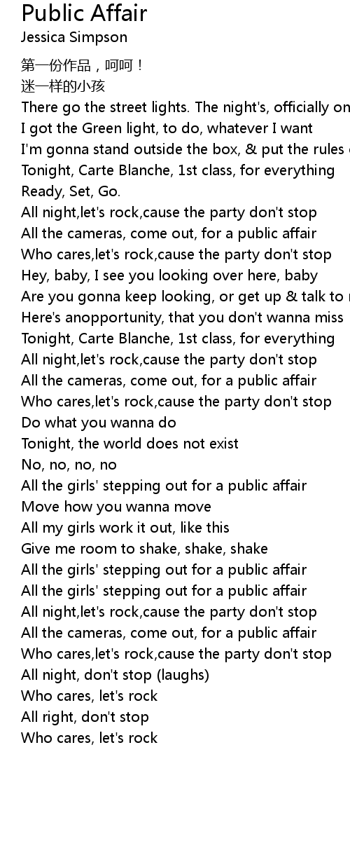 | [01:58.15] | All the girls' stepping out for a public affair |