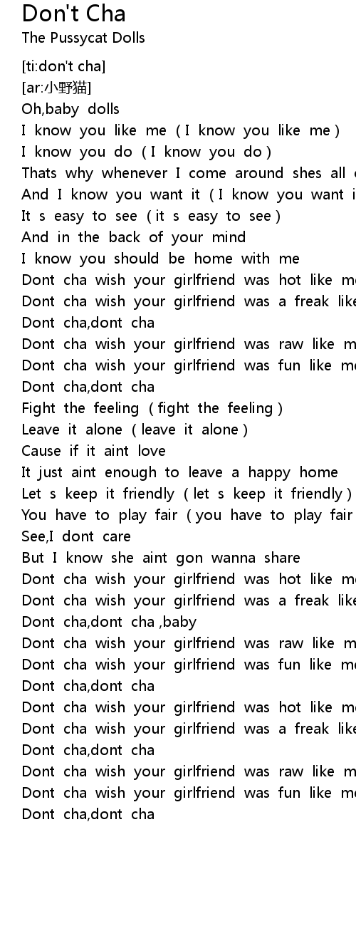 | [02:27.460] | Dont cha wish your girlfriend was fun like me |