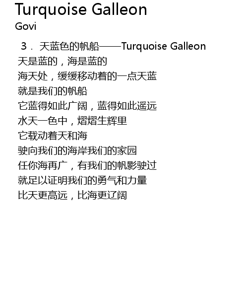 | 3. 天蓝色的帆船——Turquoise Galleon | |
