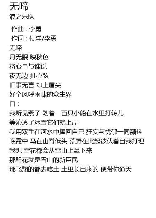 | [00:02.944] | 无啼 |