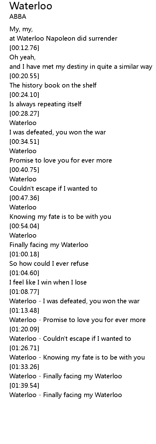 Waterloo - I was defeated, you won the war |