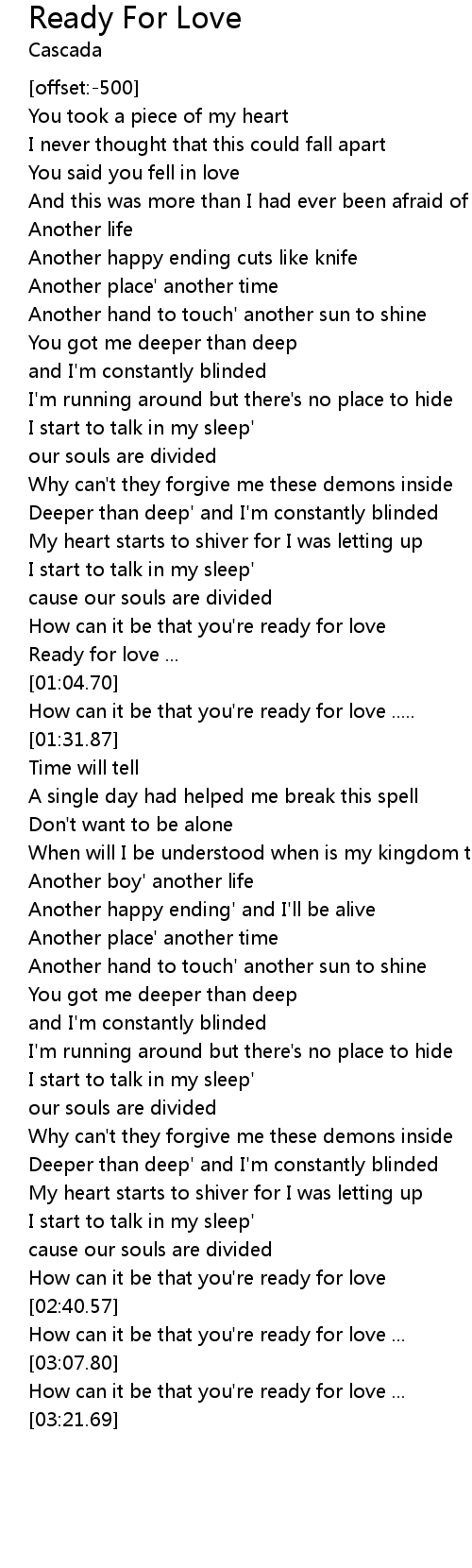 How can it be that you're ready for love ..... |