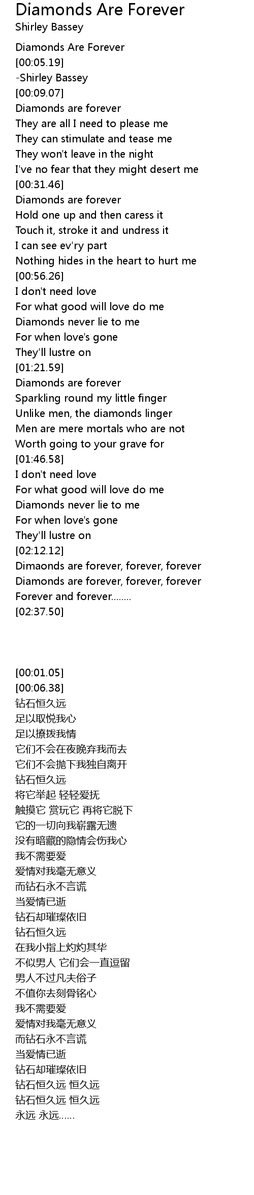[00:01.05] Diamonds Are Forever