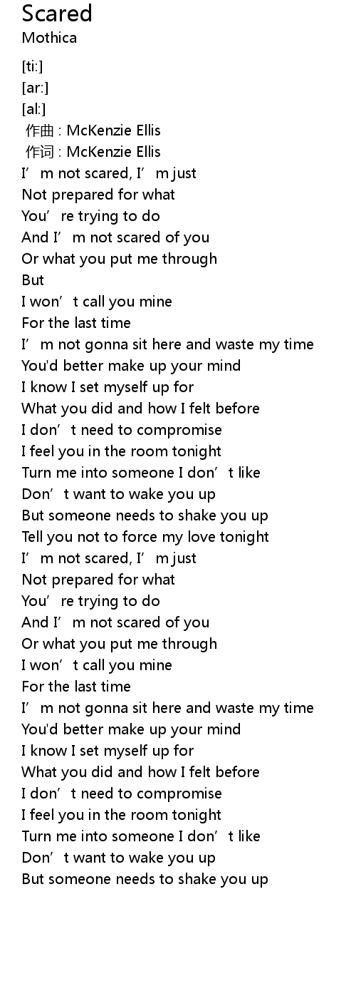 | [00:13.05] | I' m not scared, I' m just |
