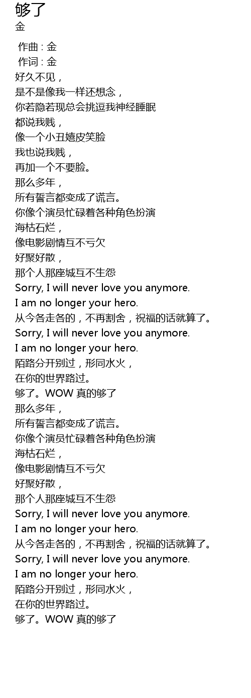 | [01:46.512] | 够了。WOW 真的够了 |