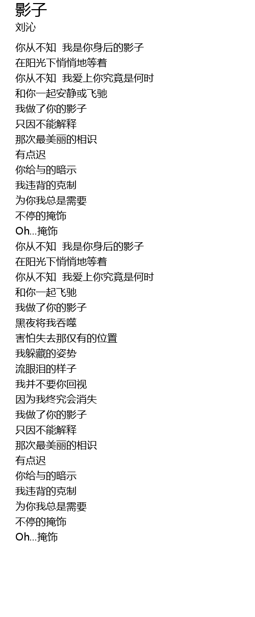 | [00:00.600] | 你从不知 我是你身后的影子 |