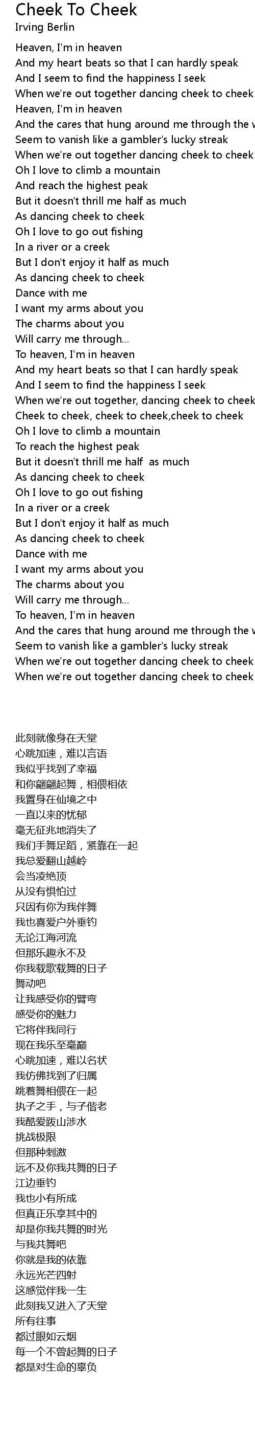 Cheek to cheek, cheek to cheek,cheek to cheek |