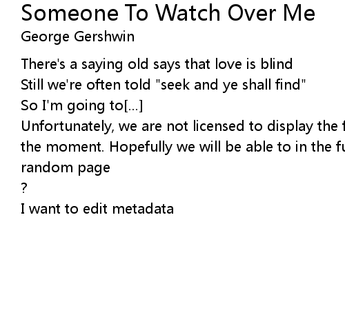 | Song | Someone To Watch Over Me |