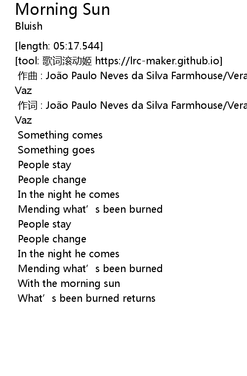 | [00:00.000] | 作曲 : João Paulo Neves da Silva Farmhouse/Vera Calhau Martins Vaz |