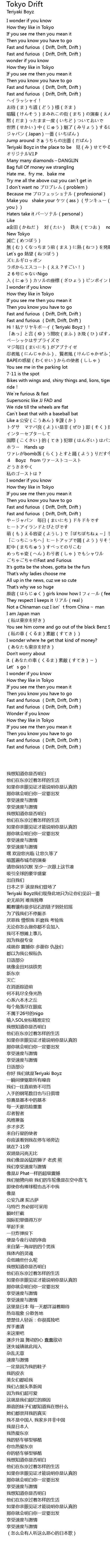 | [00:18.89] | Fast and furious (Drift, Drift, Drift) |