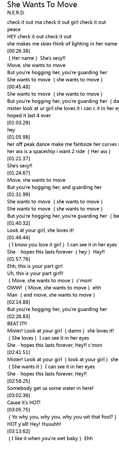 | [01:32.55] | She wants to move (she wants to move) |