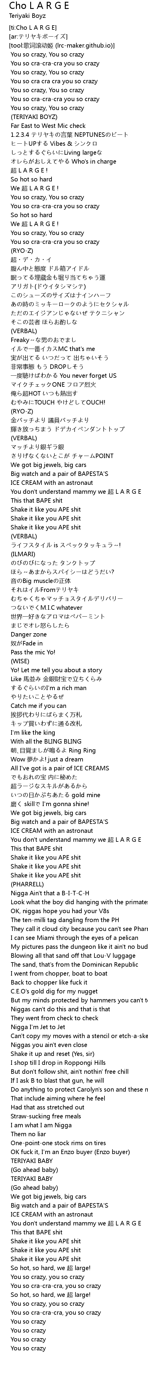 | [03:02.370] | You don' t understand mammy we chāo L A R G E |
