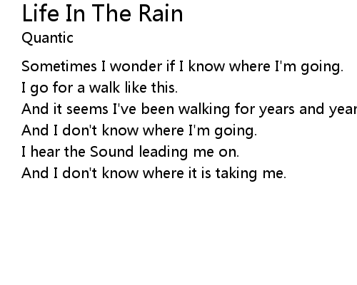 | Song | Life In The Rain |