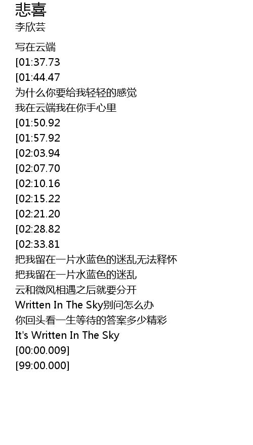 | [00:13.28][01:37.73][03:17.71] | 李欣芸-写在云端 |