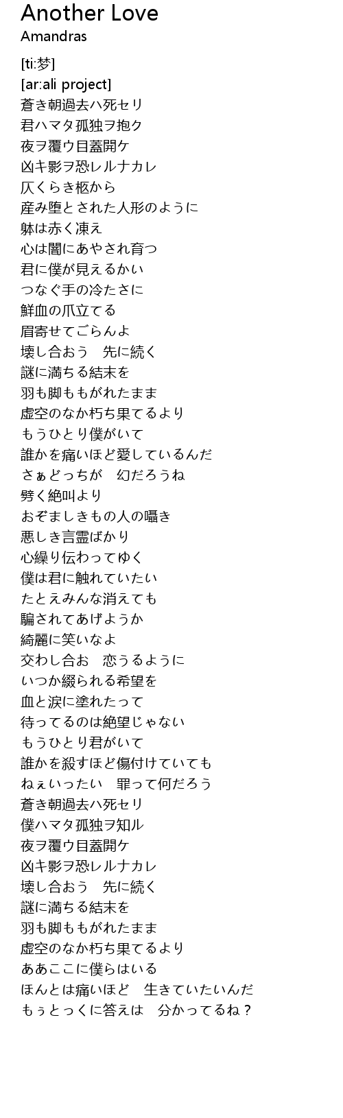 | [00:19.502] | 君ハマタ孤独ヲ抱ク |