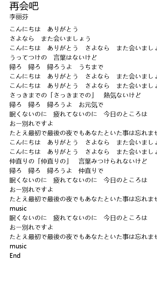 | [00:13.63] | こんにちは ありがとう さよなら また会いましょう |