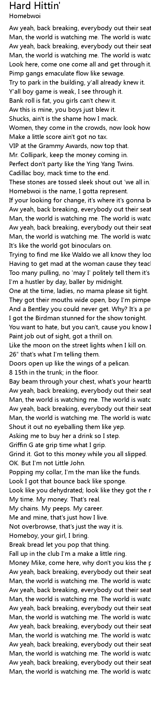 Man, the world is watching me. The world is watching me. |