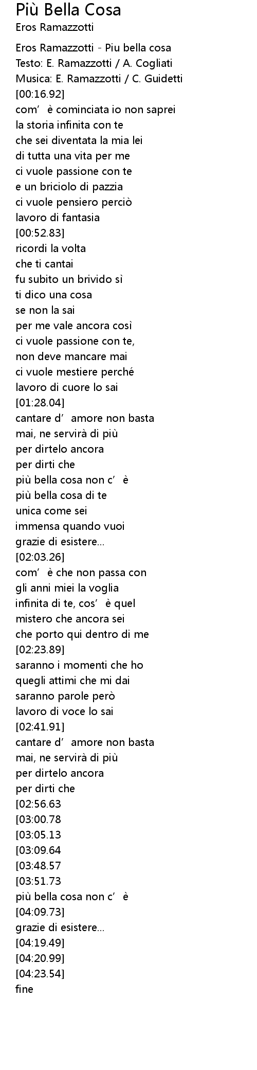 | [00:10.92] | Testo: E. Ramazzotti / A. Cogliati |