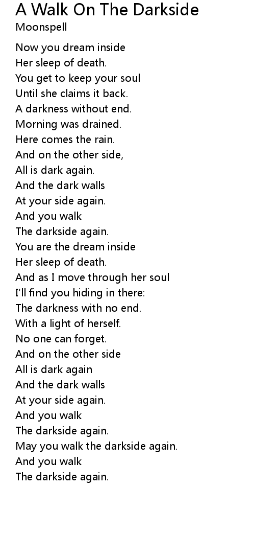May you walk the darkside again. |