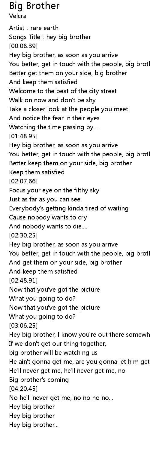 | [01:56.88] | You better, get in touch with the people, big brother |