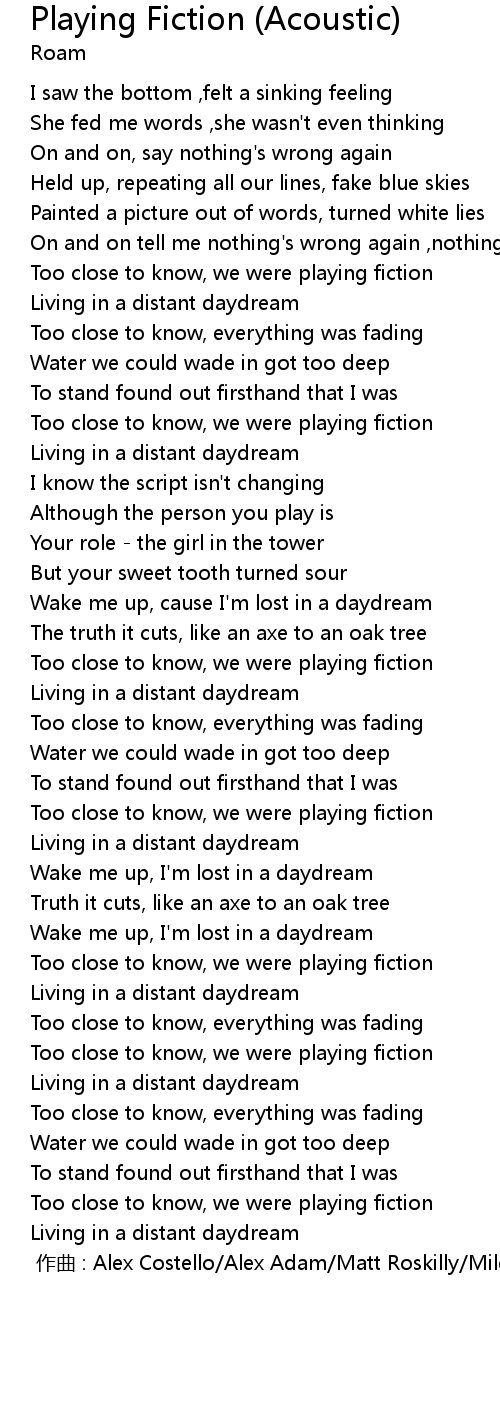 | [01:54] | Wake me up, I'm lost in a daydream |