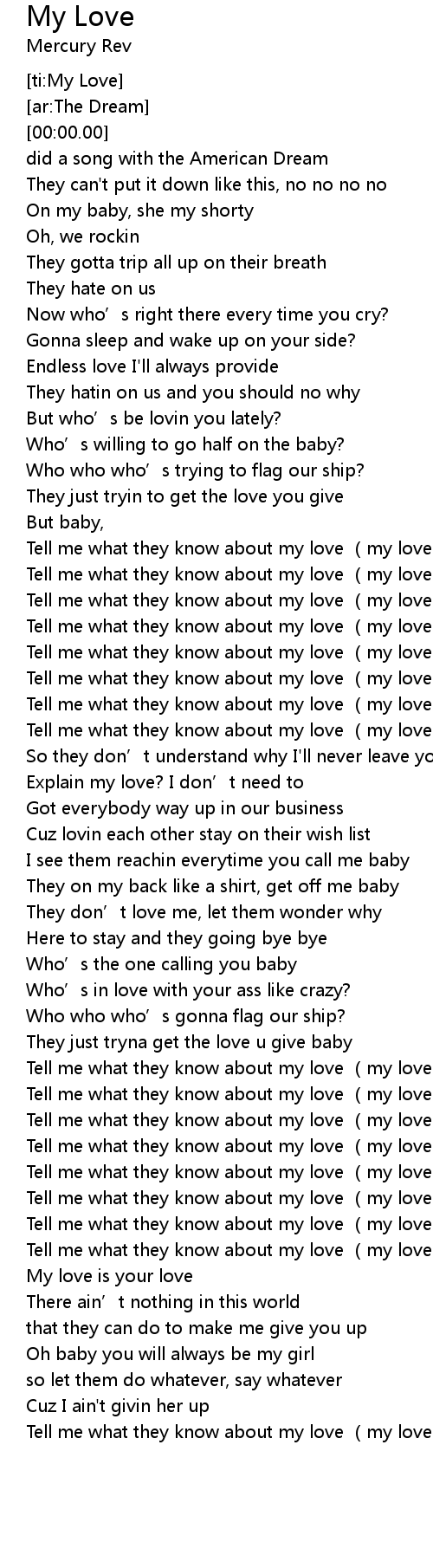 | [00:57.30] | Tell me what they know about my love (my love) |