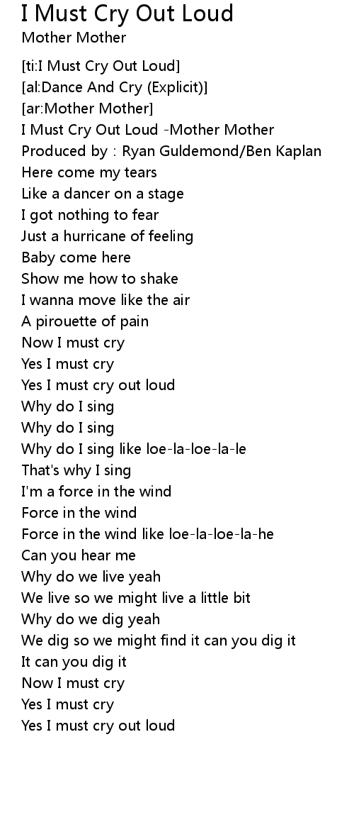 | [00:01.218] | I Must Cry Out Loud Mother Mother |
