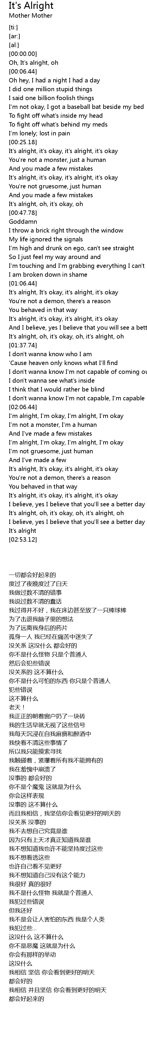 It's alright, It's okay, it's alright, it's okay |