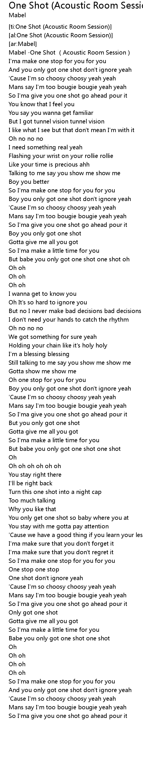 | [00:00.564] | Mabel -One Shot (Acoustic Room Session) |