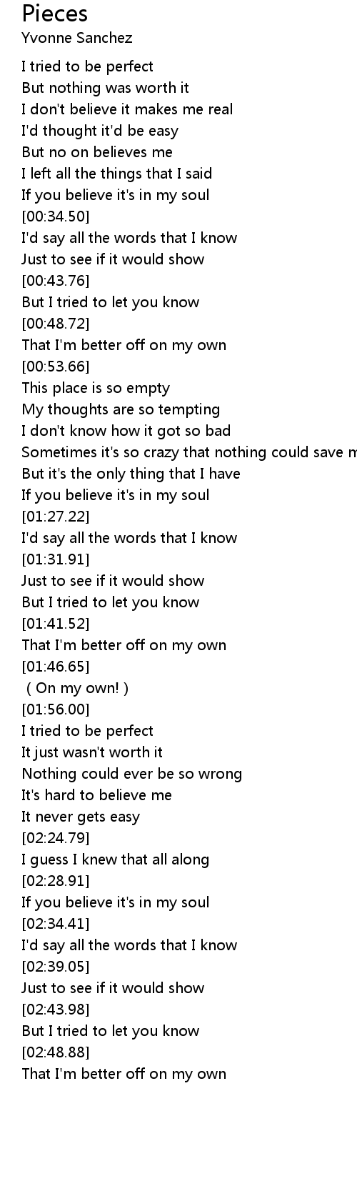| [01:22.42] | If you believe it's in my soul |