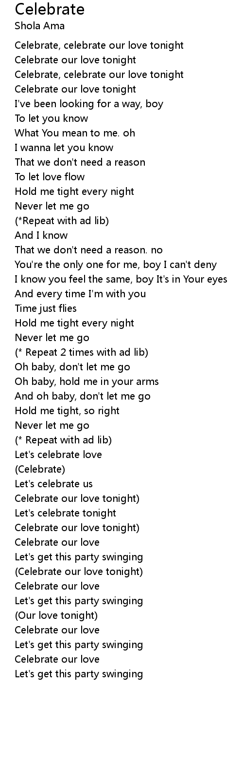 Celebrate, celebrate our love tonight |