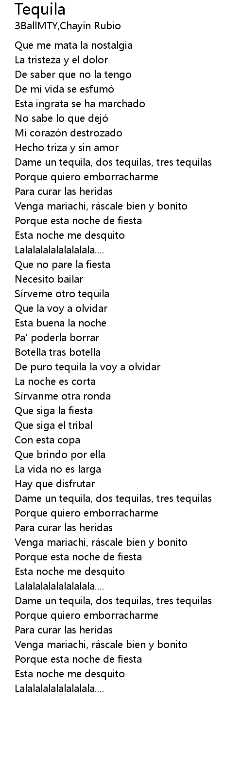 | [00:16.46] | Dame un tequila, dos tequilas, tres tequilas |