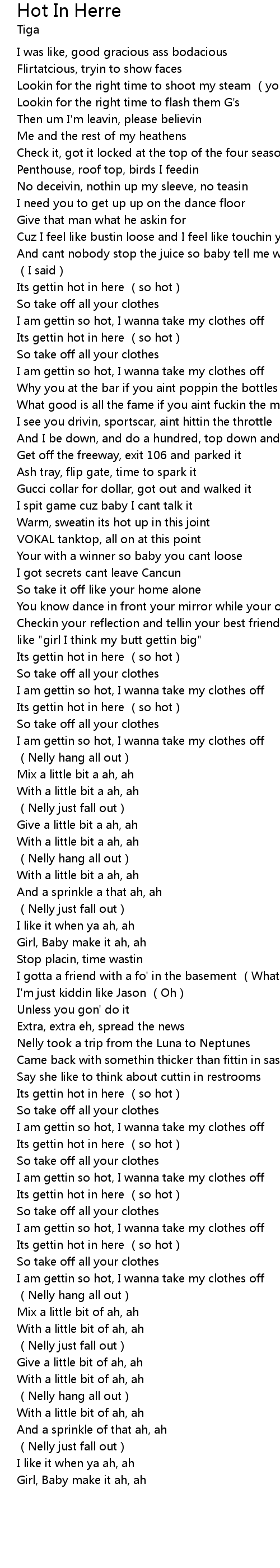 | [02:53.32] | Its gettin hot in here (so hot) |