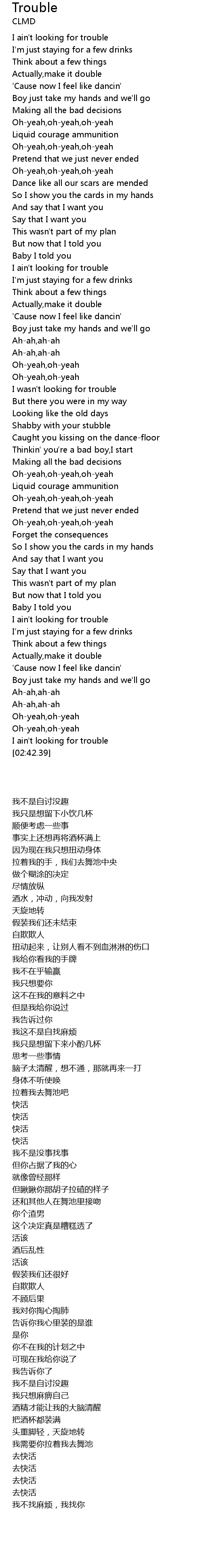 | [02:38.99] | I ain't looking for trouble |