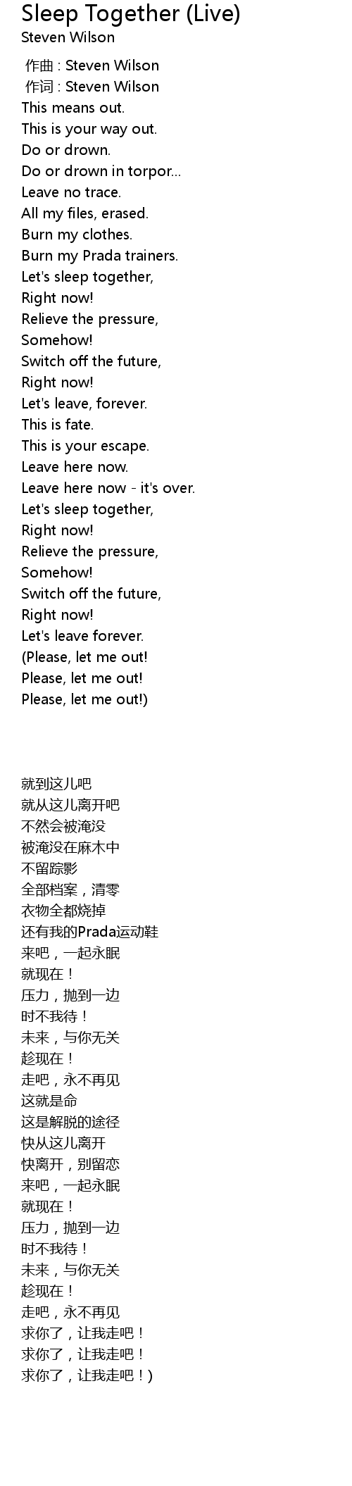 | [00:01.000] | 作词 : Steven Wilson |