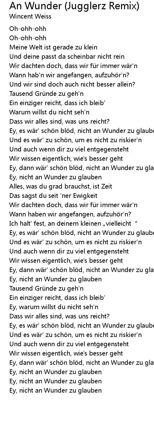 | [00:46.243] | Ey, es wär' schön blöd, nicht an Wunder zu glauben |
