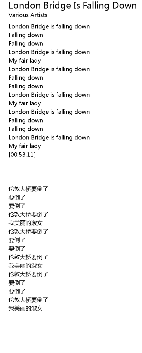 | [00:42.55] | London Bridge is falling down |