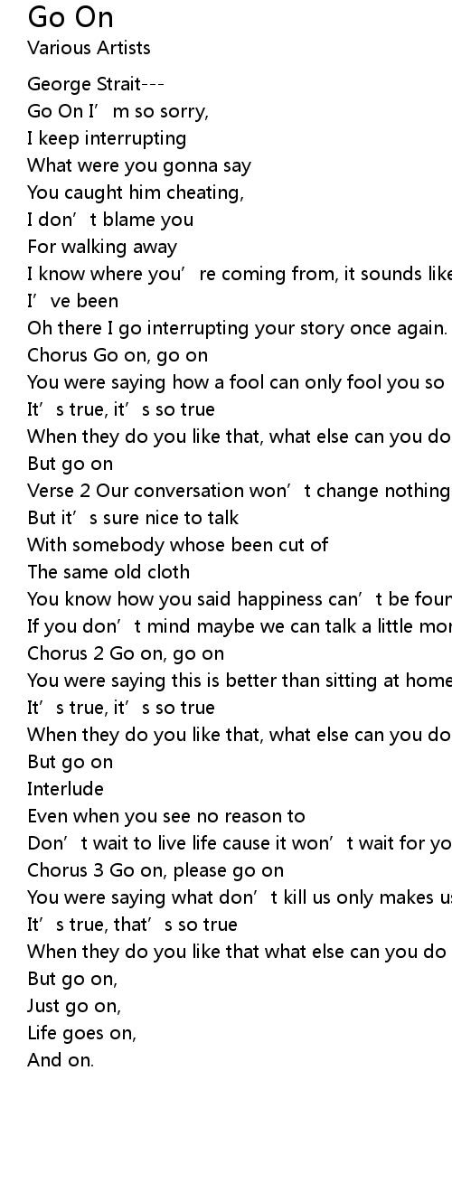| Chorus Go on, go on | |