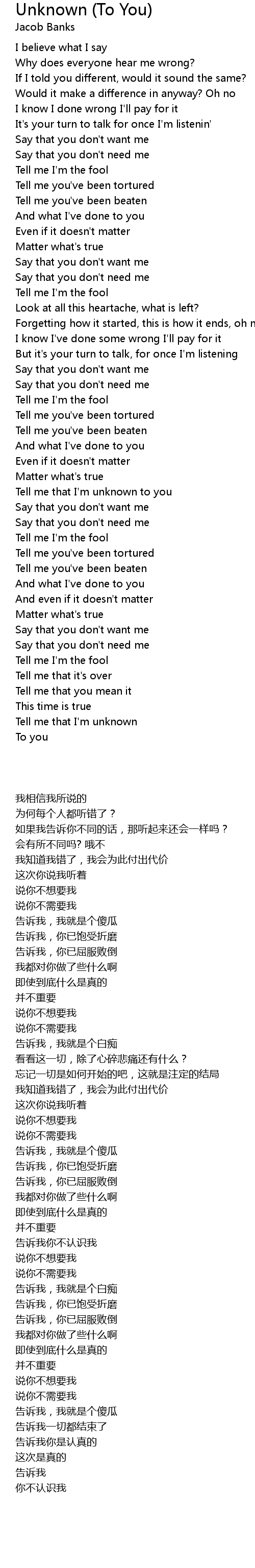 Tell me that I'm unknown to you |