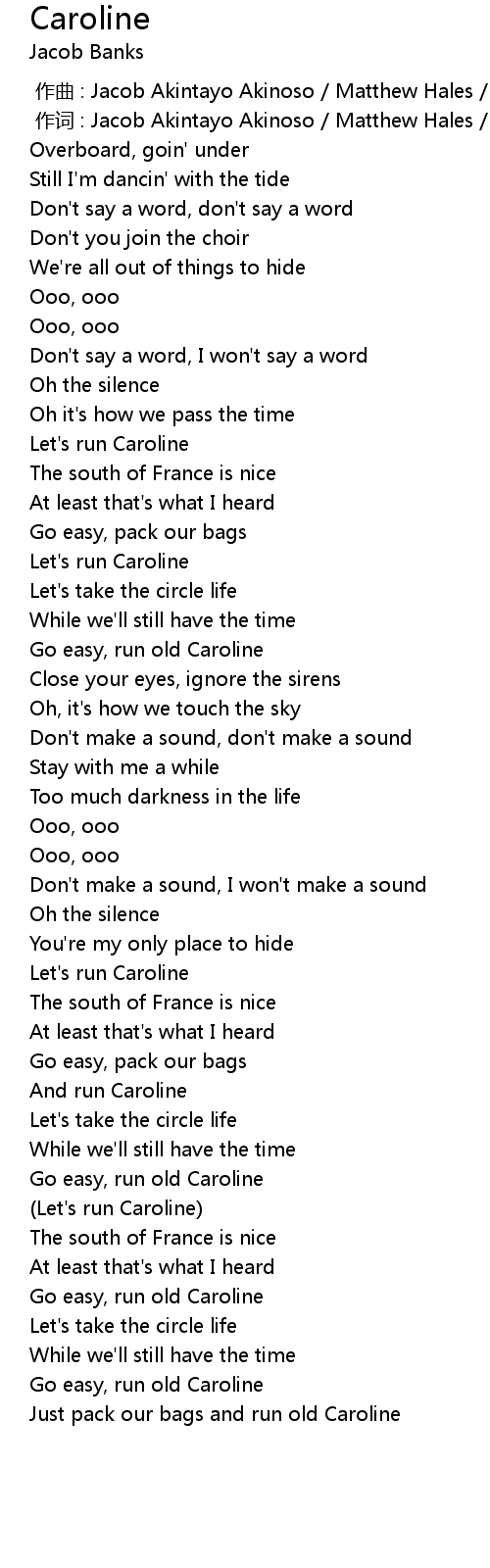 | [02:42.704] | Go easy, run old Caroline |