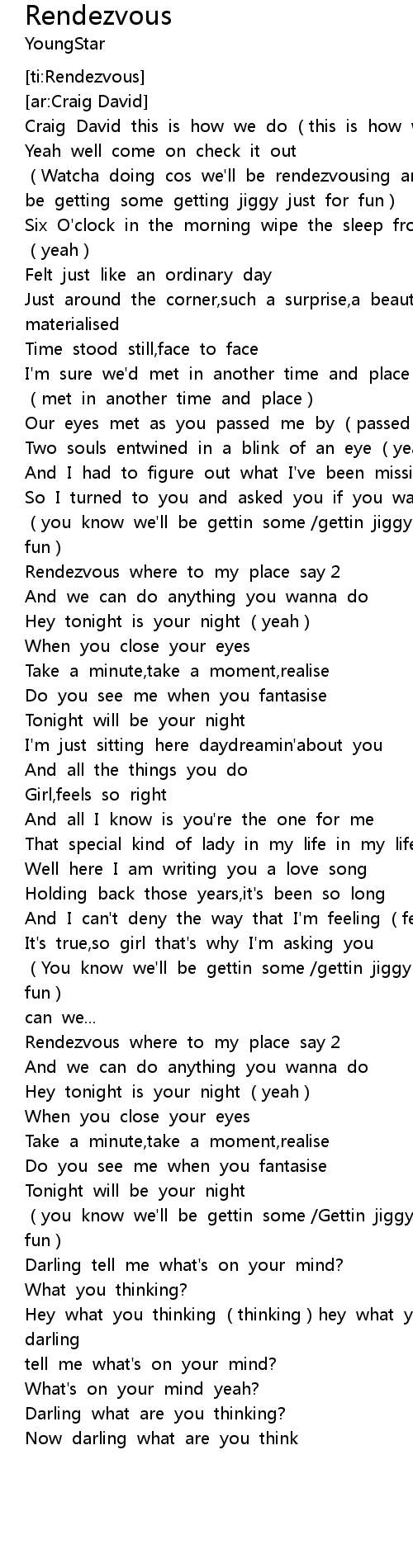 | [02:37.69] | Rendezvous where to my place say 2 |