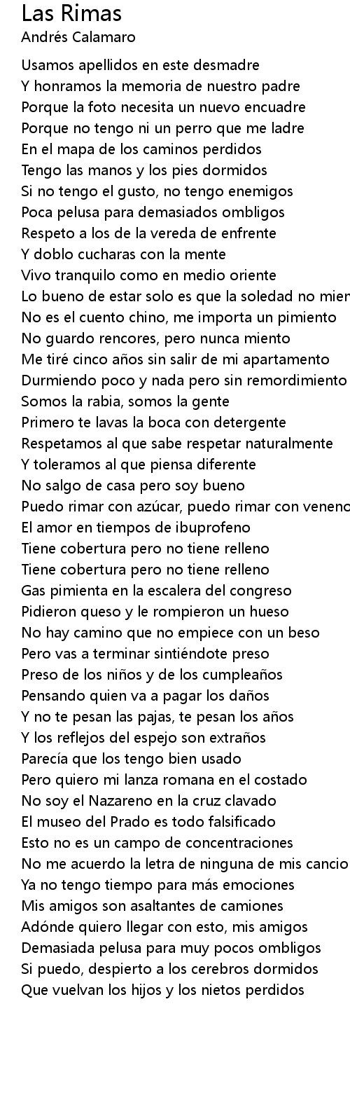 | [01:32.97] | Puedo rimar con azúcar, puedo rimar con veneno |