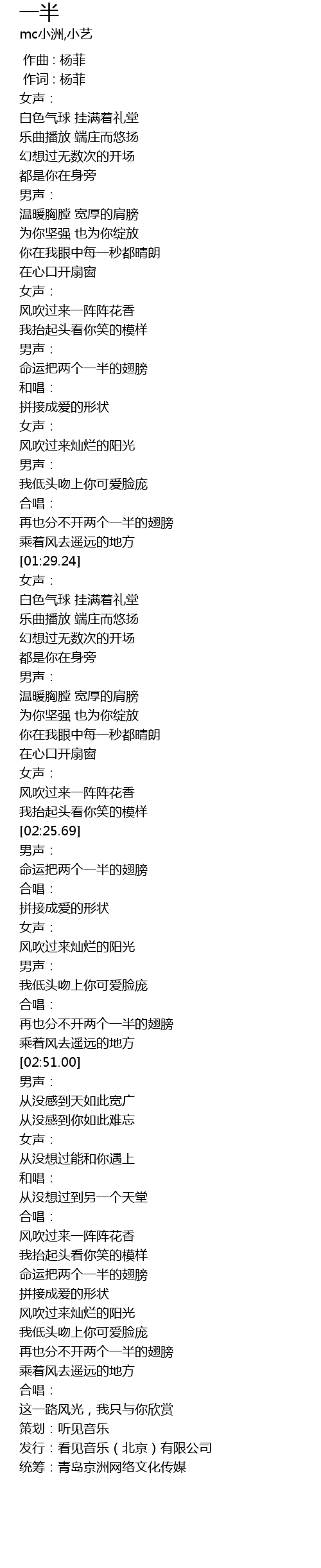 | [01:19.17] | 再也分不开两个一半的翅膀 |